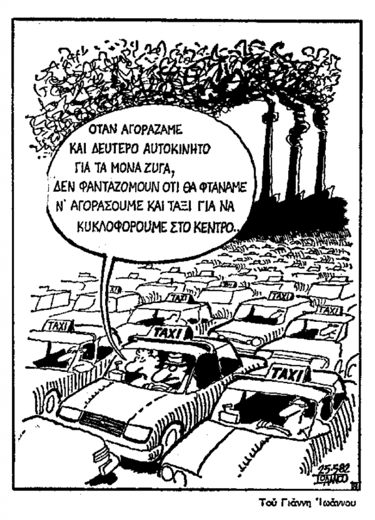 “When we bought a second car for the ‘only evens’, I didn’t imagine we would reach the point of also buying a taxi to move around the center.” «ΤΟ ΒΗΜΑ», 26.5.1982, Ιστορικό Αρχείο «ΤΟ ΒΗΜΑ» | «ΤΑ ΝΕΑ»