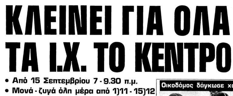 “Closed for everyone the private cars in the center” «ΤO BHMΑ», 29.5.1982, Ιστορικό Αρχείο «ΤΟ ΒΗΜΑ» | «ΤΑ ΝΕΑ»