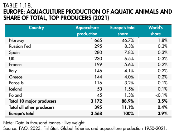 To get a sense of scale when looking at the Greek production figures, even though Greece is listed in the top 10 aquaculture producers in Europe, its aquaculture production is a mere 144 thousand tonnes per year against China’s 51,221 thousand tonnes.