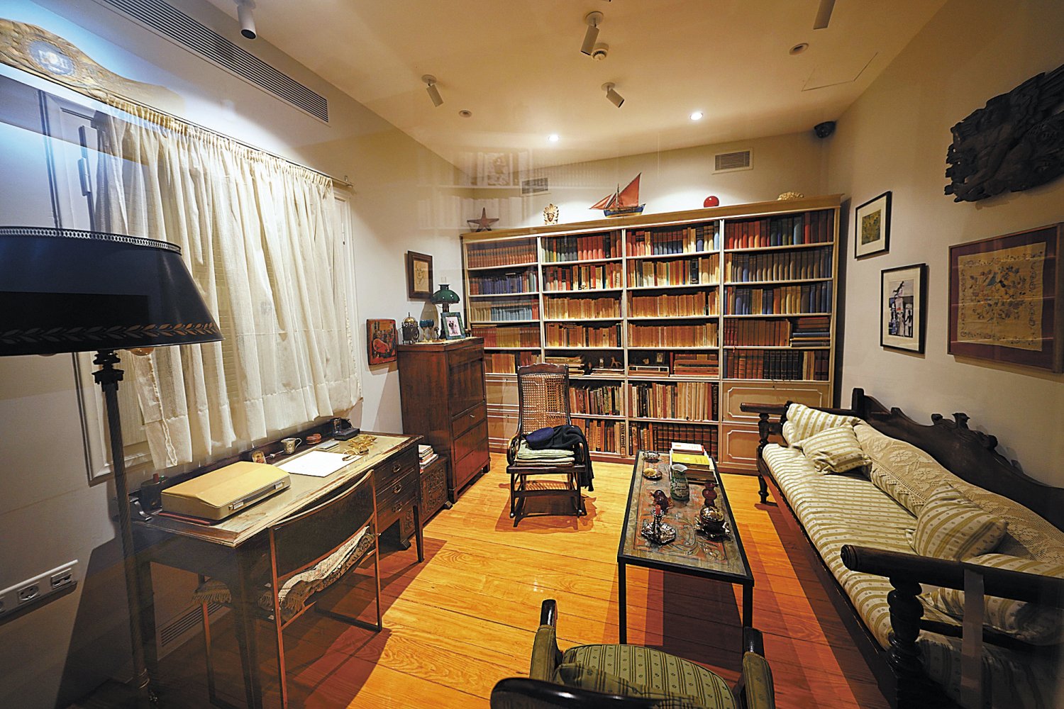 The inner hall includes a faithful reconstruction of Elytis’ working space, showcasing his study desk, which he used from his school years throughout his life, along with personal furniture such as his bookcase – designed by Greek artist Yannis Moralis – and a selection of over 700 books from his personal library.