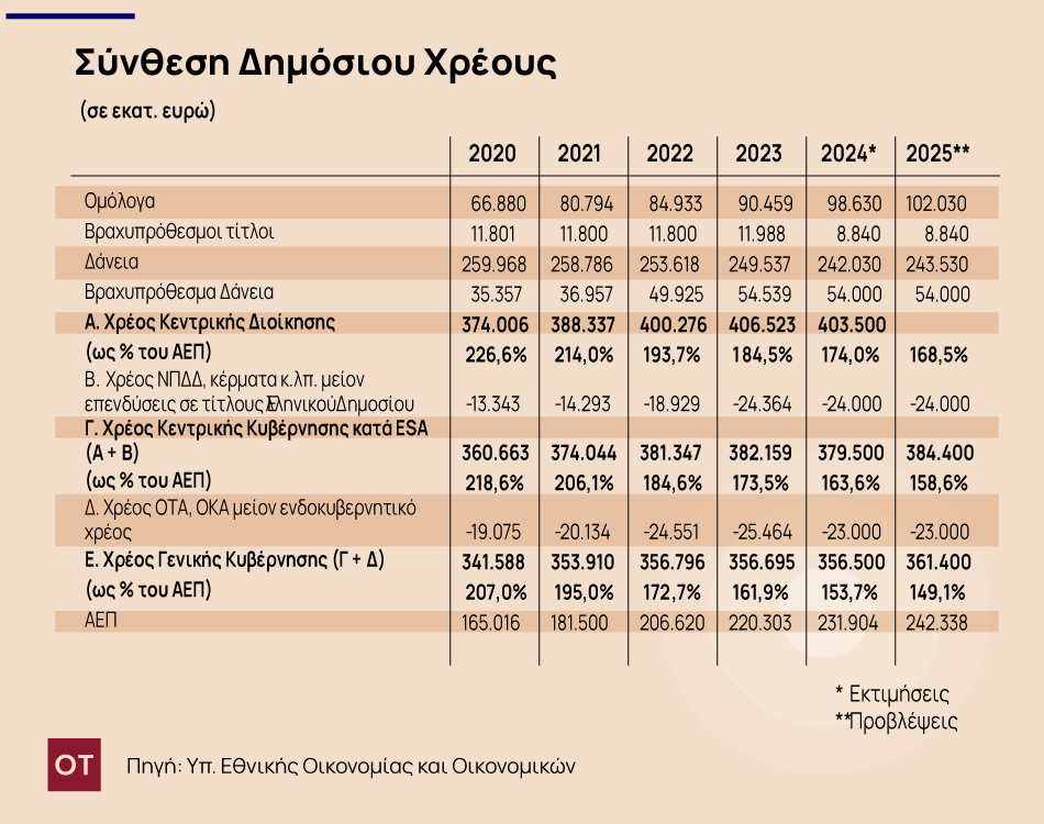 In 2025, the general government debt is forecast to fall to 149.1% of GDP, with its nominal value at 361.4 billion euros, compared to 2024.