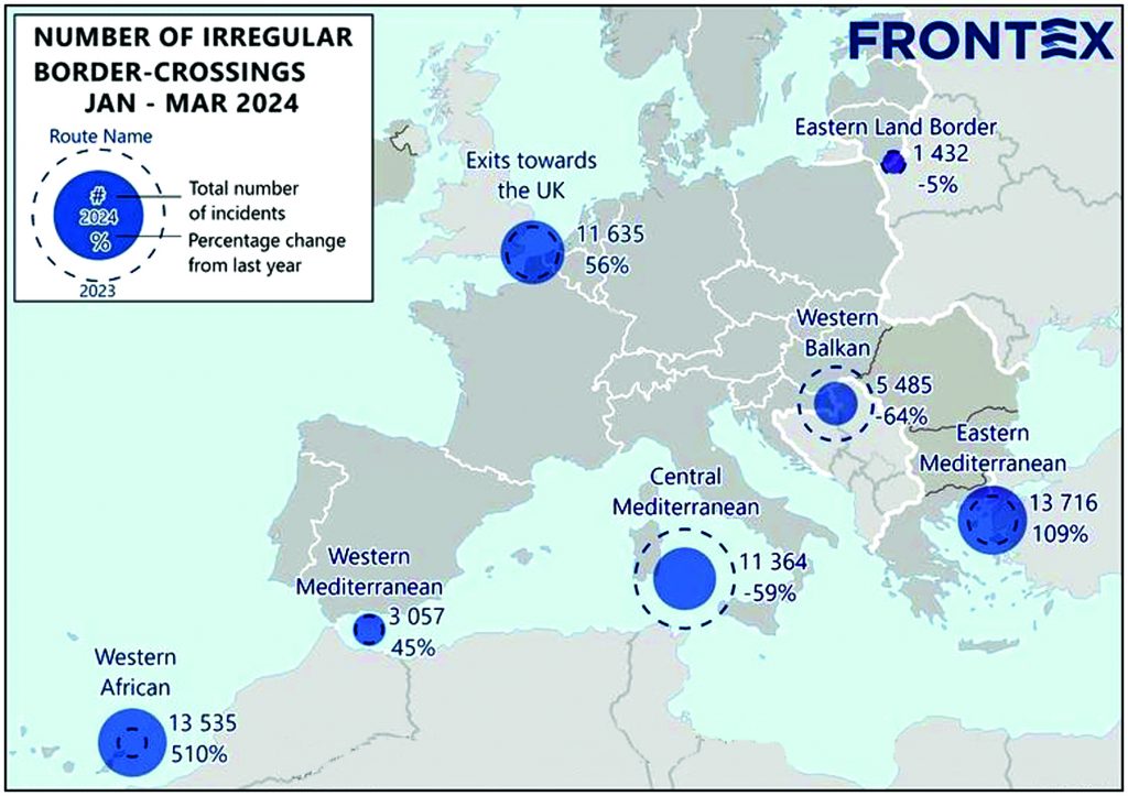 The agreement comes on the heels of 2023, and the highest levels of irregular migration flows to the EU since 2016, and of a 109% increase in irregular crossings in the Eastern Mediterranean in the first quarter of 2024, as reported by the EU’s Border and Coast Guard Agency FRONTEX.