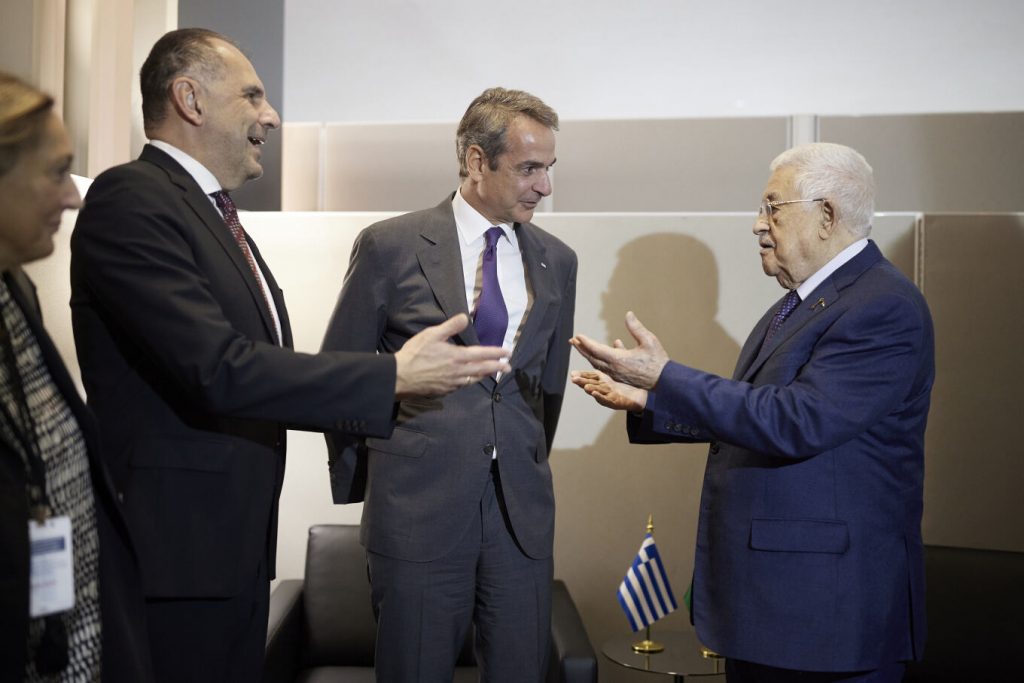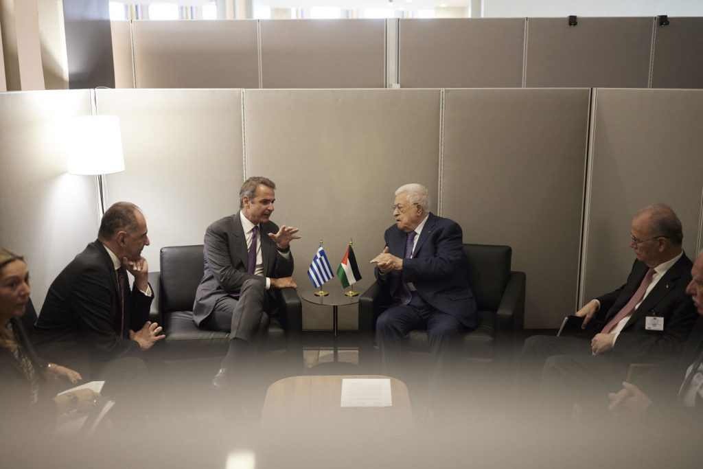 Greek Prime Minister Kyriakos Mitsotakis met with the President of the Palestinian Authority (PA), Mahmoud Abbas, on the sidelines of the 79th General Assembly, in New York on, on Wednesday.