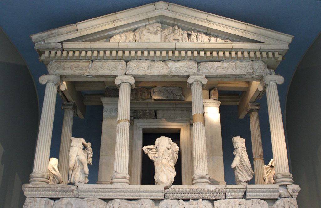Moreover, Turkey is also in conflict with the British Museum over the return of several antiquities originating from Turkey, including: the Nereid monument, the Lion of Knidos and part of the Mausoleum of Halicarnassus.