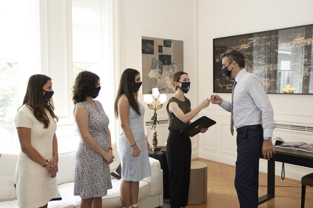 President of Greece Katerina Sakellaropoulou with the Greek-American students who participated in the “Foreign Policy Trip” program of the American Hellenic Institute.