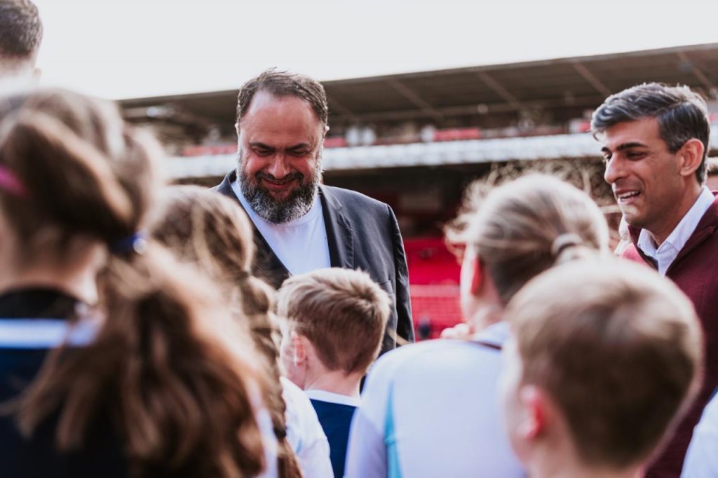 Nottingham Forest owner Evangelos Marinakis on Friday welcomed British Prime Minister Rishi Sunak to the club’s City Ground for the unveiling of a county-wide community health initiative.