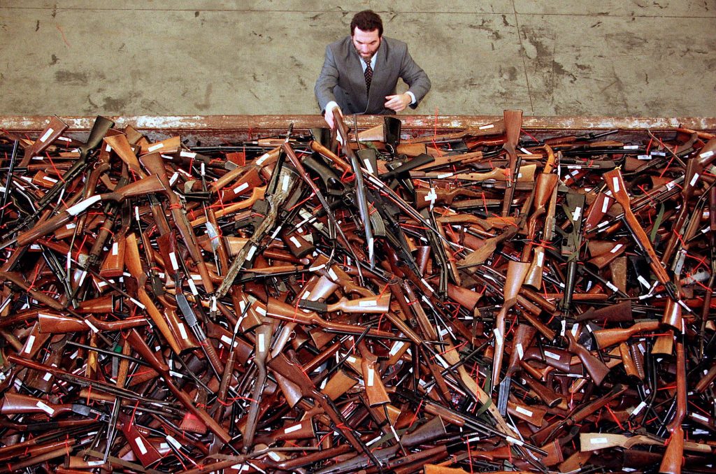 Mick Roelandts, firearms reform project manager for the New South Wales Police, looks at a pile of around 4,500 prohibited firearms that have been handed in over the past month under the Australian government’s buy-back scheme in Sydney, Australia, July 28, 2017. REUTERS/David Gray/File photo TPX IMAGES OF THE DAY