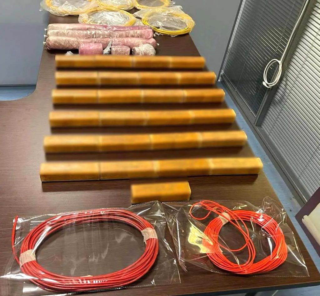 The operation carried on Monday by Greece’s Organized Crime Unit included simultaneous raids at five sites in Mandra, Western Attica, where they found and seized dozens of weapons and explosives, including military-grade explosives, dynamite, detonators, firearms, gun silencers, bulletproof vests, handcuffs, swords, and knives, among others.