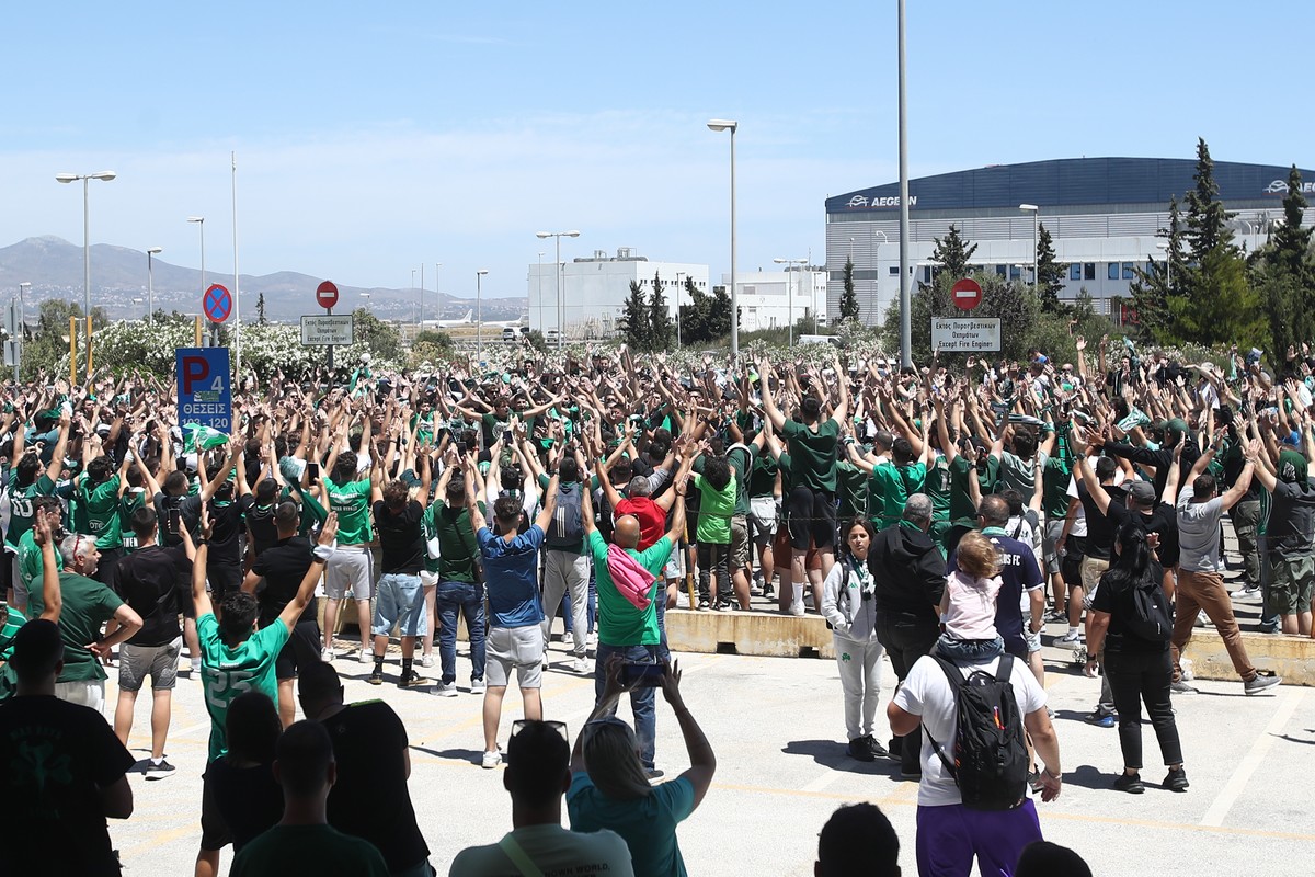 Thousands of Panathinaikos fans have flocked to the Athens International Airport and the Greens’ home ground at OAKA stadium to welcome the new Euroleague basketball champions.