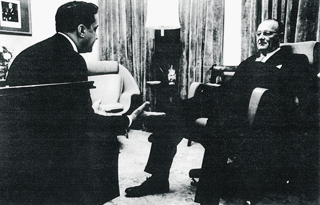 Mike Manatos Sr. with the 36th U.S. President, Lyndon B. Johnson.