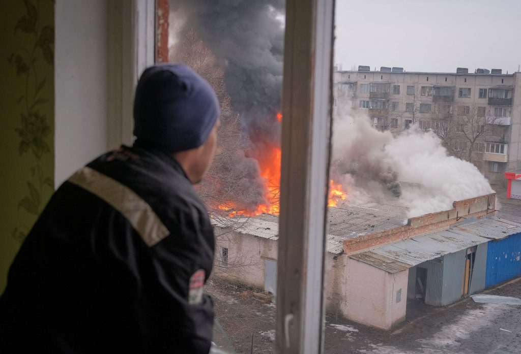 A local resident looks at buildings damaged by a Russian military strike, amid Russia’s attack on Ukraine, in the city of Chasiv Yar, in Donetsk region, Ukraine February 27, 2023. REUTERS/Alex Babenko