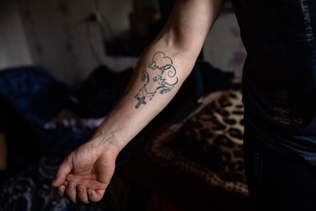 The slain couple’s son, Andriy Borshchevskiy, got the words dad and mum tattooed on his arm.