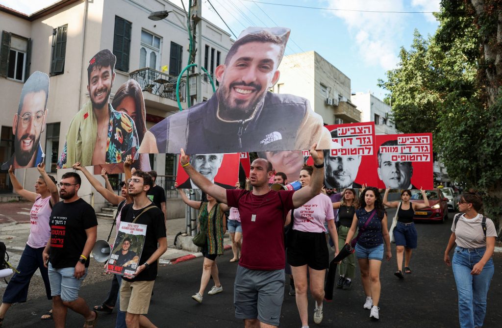 People gather to protest against the government and to show support for the hostages who were kidnapped during the deadly October 7 attack, amid the ongoing conflict in Gaza between Israel and Hamas, in Tel Aviv, Israel, September 3, 2024. REUTERS/Florion Goga