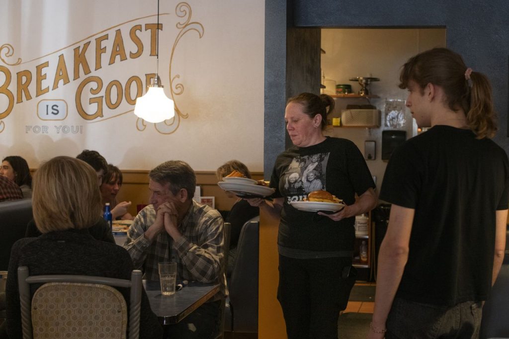 Natasha LaPlante, a 41-year-old server at Chef Zorba’s, said she appreciates her current pay of $18.29 an hour plus tips from a restaurant-wide pool after making $6 an hour when she started waiting tables in Oklahoma decades ago. But LaPlante and her wife are struggling to pay off debts. She said that if her wife lost her job, the family, which includes her wife’s two children, wouldn’t be able to live off her salary alone.