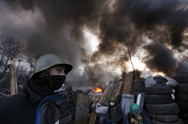 An anti-government protester mans a barricade in Kiev February 21, 2014. REUTERS/Baz Ratner