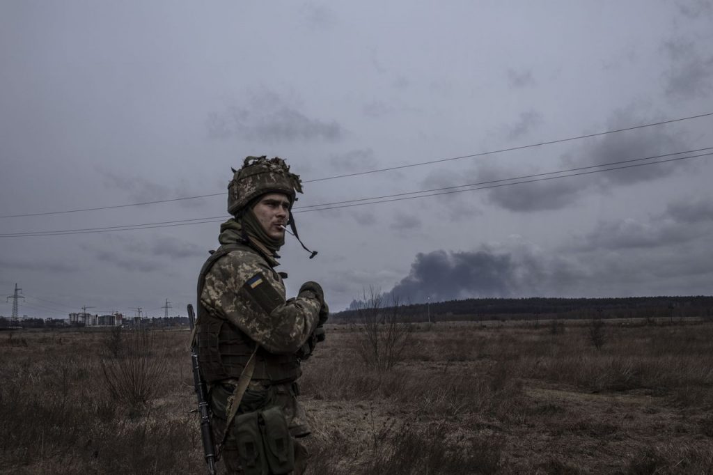 A Ukrainian soldier during a break in fighting on the outskirts of Kyiv on March 4, 2022. PHOTO: MANU BRABO FOR THE WALL STREET JOURNAL