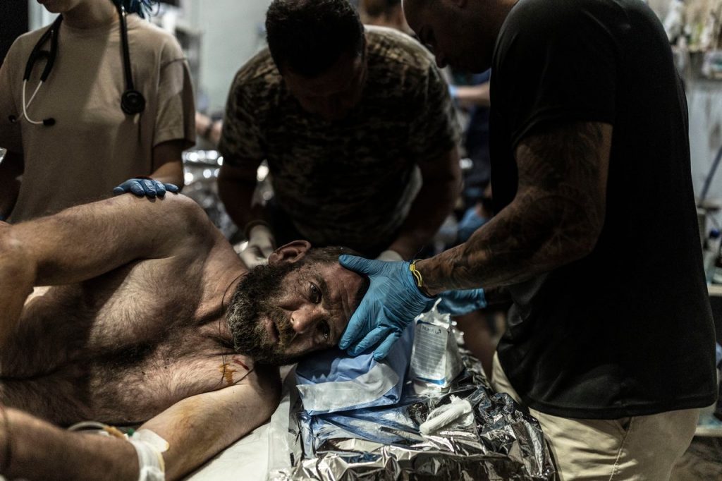 Paramedics treated a wounded Ukrainian soldier in a medical stabilization point near Pokrovske in eastern Ukraine on June 23, 2023. PHOTO: MANU BRABO FOR THE WALL STREET JOURNAL