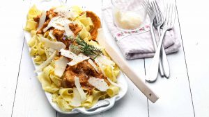 This chicken ragu is easy to make and goes perfectly with pappardelle pasta