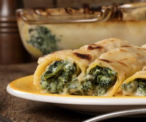 Enjoy the rich, creamy flavors of these savory crepes as the béchamel sauce complements the spinach and cheese filling!