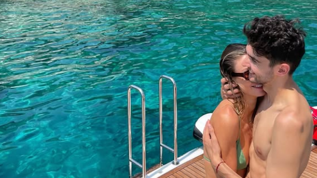 The couple posted social media photos from the Ionian Island of Kefalonia (Cephalonia) aboard a luxury yacht, with Ocon taking over the helm and showing off his ability in water sports.