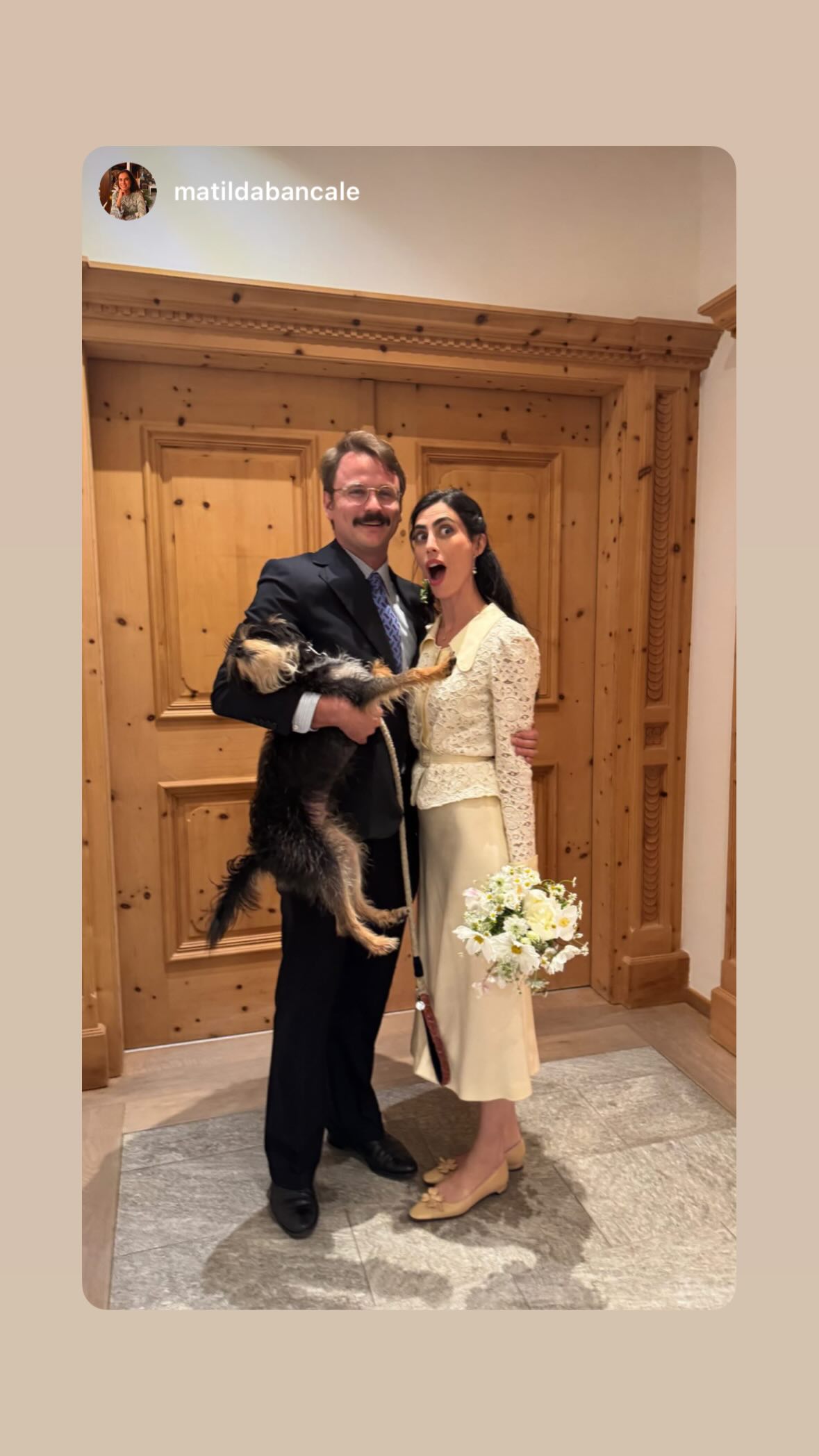 The couple exchanged vows in a quiet family gathering in Surselva, a picturesque, verdant region nestled in the Swiss Alps. The 35-year-old investigative journalist and photographer, Nicolas Niarchos, and his bride, Malù, appeared effortlessly elegant. Malù captivated with her refined bridal ensemble—a cream-toned lace jacket paired with a midi skirt—offering a modern twist on timeless sophistication.
