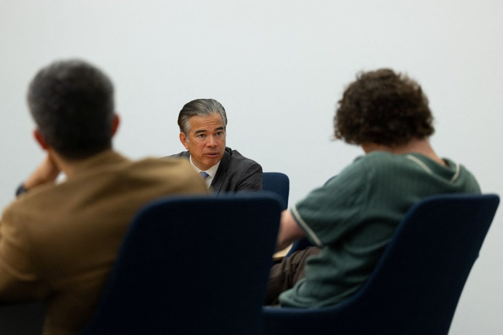 California Attorney General Rob Bonta speaks with journalists during the Reuters Inside Climate Week NYC in Manhattan, New York City, U.S., September 23, 2025.REUTERS/Carlos Barria