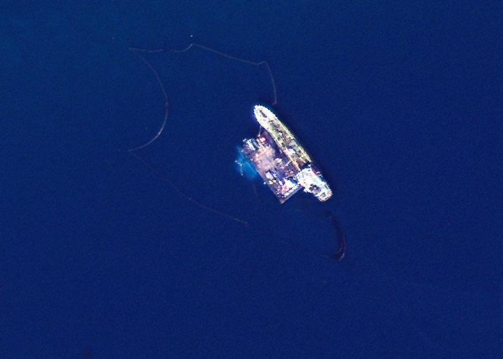 A handout satellite photo dated 13 September 2017, made available on 19 September 2017 by European Space Imaging, showing containment buoys visible around the sunk tanker on the Salamis coastline, Greece. The small tanker ship ‘Agia Zoni II’ sank on 10 September while anchoring off the coast of Salamina, near Greece’s main port of Piraeus, with a cargo of 2,200 tons of fuel oil and 370 tons of marine fuel oil on board. EPA/EUROPEAN SPACE IMAGING