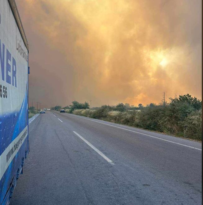 According to the Fire Department, the fire is inching toward residencies, between the settlements of Krieza and Petries, but with a southern direction due to the strong northerly winds blowing in the area, with a force of 4 and gusts up to 7 Beaufort.