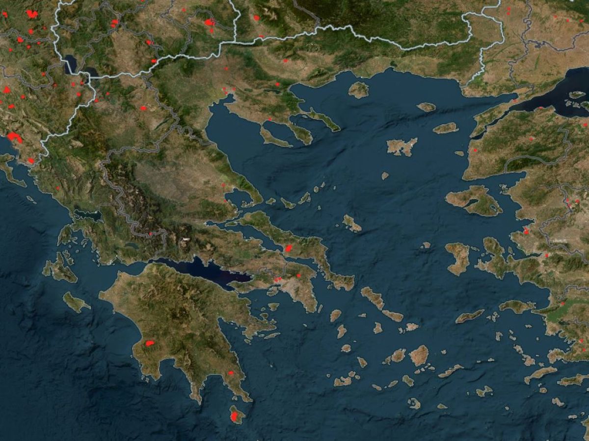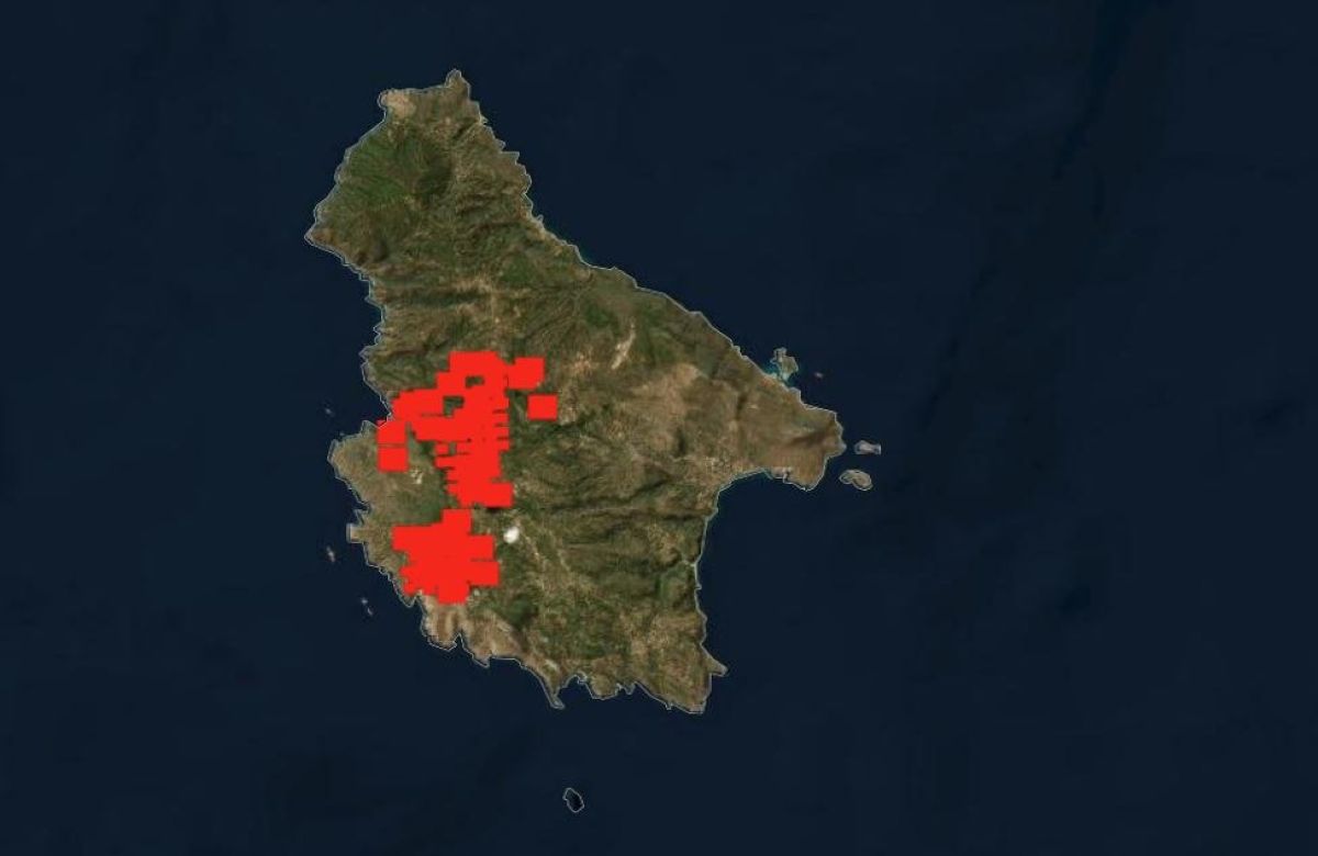 In Greece, multiple wildfire fronts remain active, particularly in Evia, Kythera, Messinia, and Chania. Of particular concern is the island of Kythera, where NASA’s satellite imagery reveals the full extent of the fire’s spread.