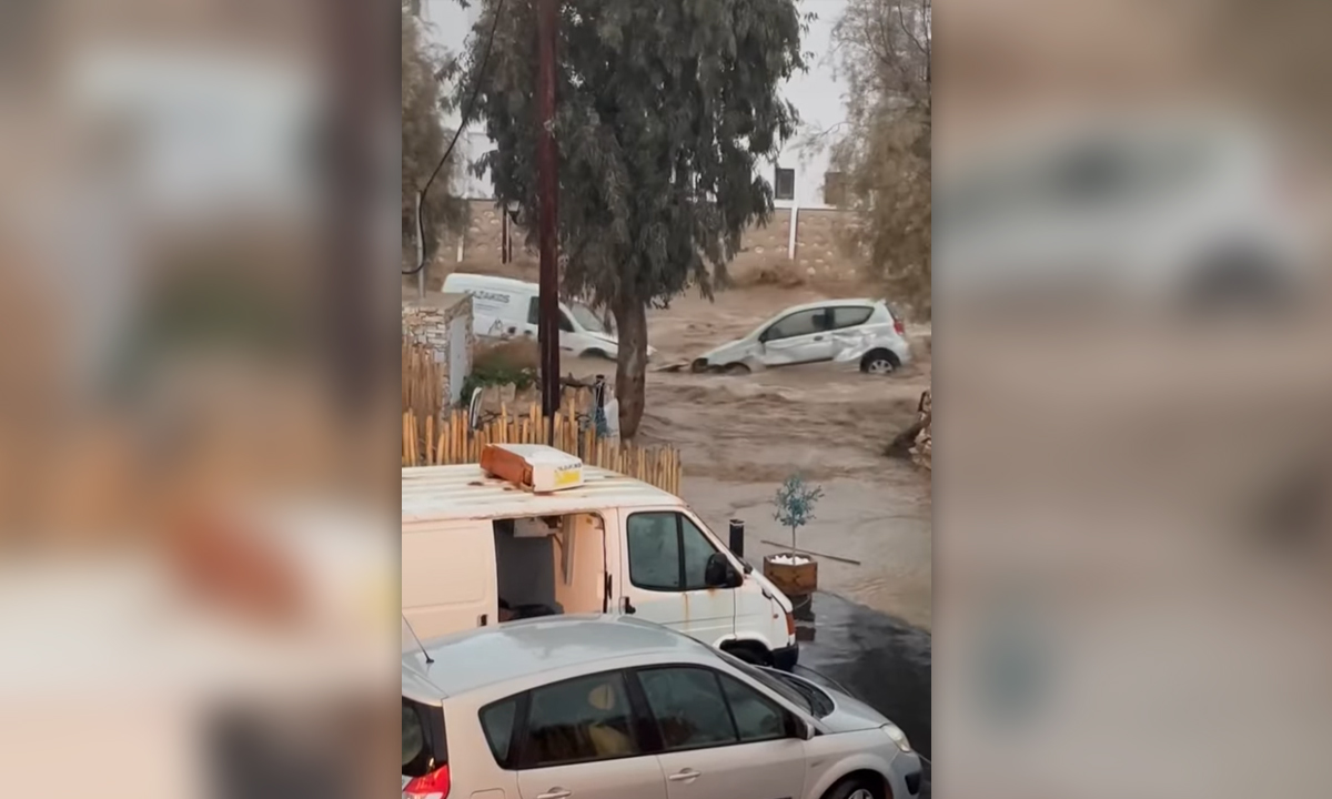 Heavy rainfall hit several of Greece’s islands on Monday afternoon, turning roads in Paros’ capital city of Naousa into fast moving torrents that swept away cars. The severe storm triggered a warning message from Greece’s civil protection authority for islanders to restrict all movements on roads.