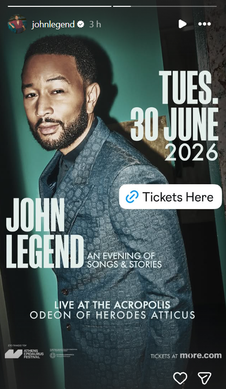 Tickets for John Legend at the Odeon of Herodes Atticus on June 30 are available through more.com.
