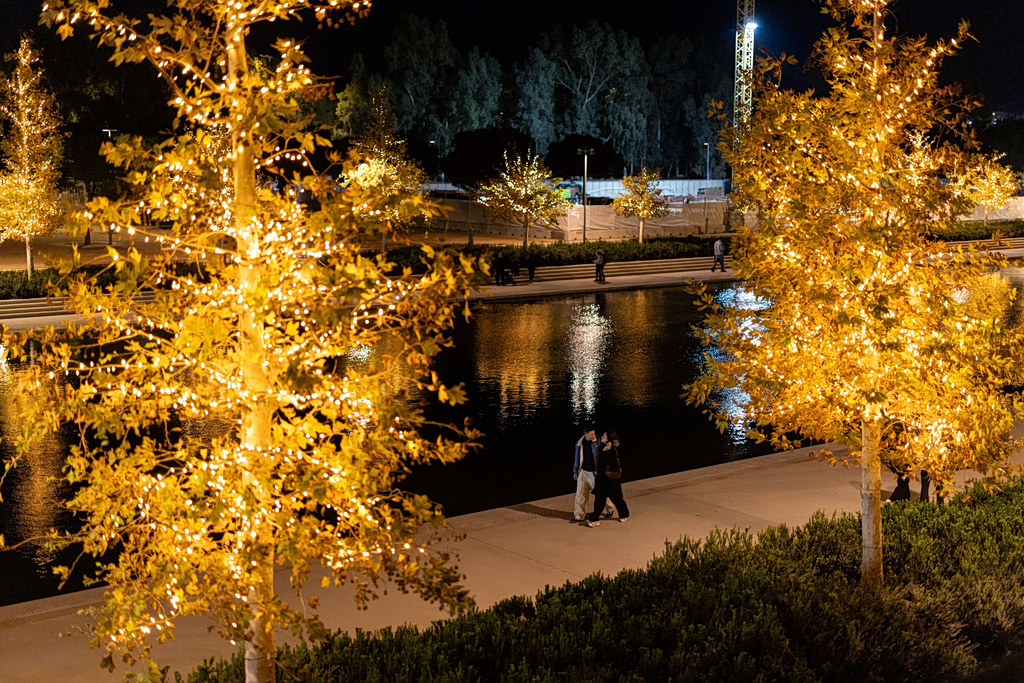 People walk at the Stavros Niarchos Foundation Cultural Center during Christmas festivities, in Athens, Greece, November 30, 2025. REUTERS/Stelios Misinas