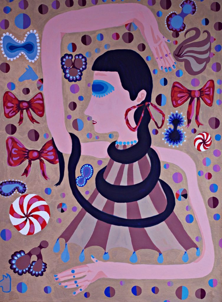 Her new body of work draws on the CMYK color system—Cyan, Magenta, Yellow, and Black—a foundational model in print image reproduction. Here, it becomes a visual code that enters into a quiet, layered dialogue with the myth of Ariadne and the Minotaur, without resorting to overt dramatic storytelling.
