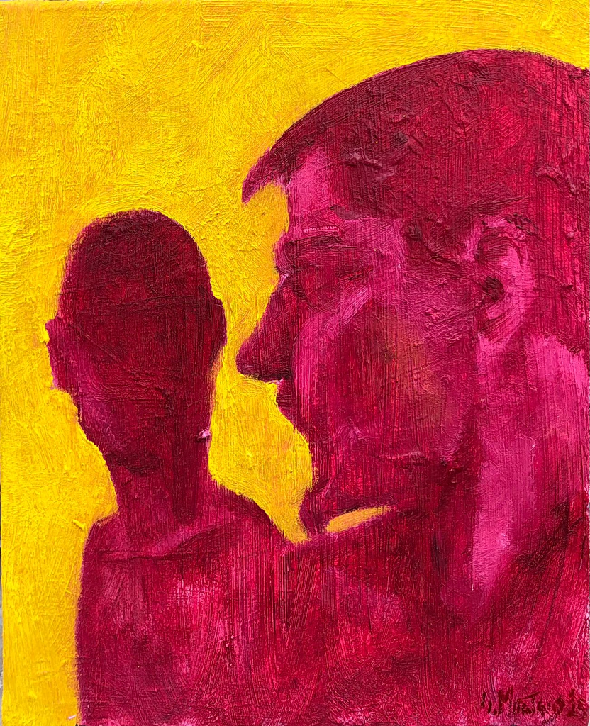 “Self Portrait II”, Orfeas Mpatsios, oil on wood, 36,3 x 55 cm, (2019)