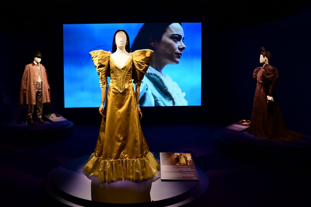 Created by Academy Award and BAFTA-winning costume designer Holly Waddington, the exhibition features six costumes for the character Bella Baxter, portrayed by Emma Stone in her Oscar-winning performance. Additionally, it includes costumes for characters Godwin Baxter (Willem Dafoe), Duncan Wedderburn (Mark Ruffalo), Max McCandles (Ramy Youssef), Harry Astley (Jerrod Carmichael), Madam Swiney (Kathryn Hunter), and Mrs. Prim (Vicki Pepperdine).