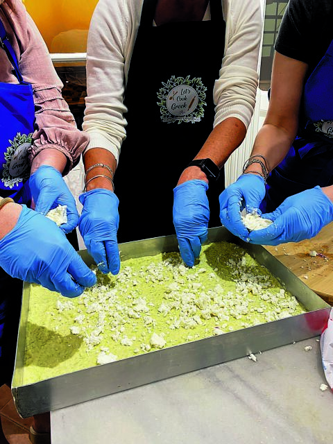 “Recently, I’ve had a lot of families coming with their children, and younger people aged 20 to 40.” She also tells us about an 80-year-old Greek-American who booked for himself and his two granddaughters. And what do they learn? Everything from making and rolling out filo pastry for spanakopita to wrapping dolmades and cooking other traditional dishes and desserts.