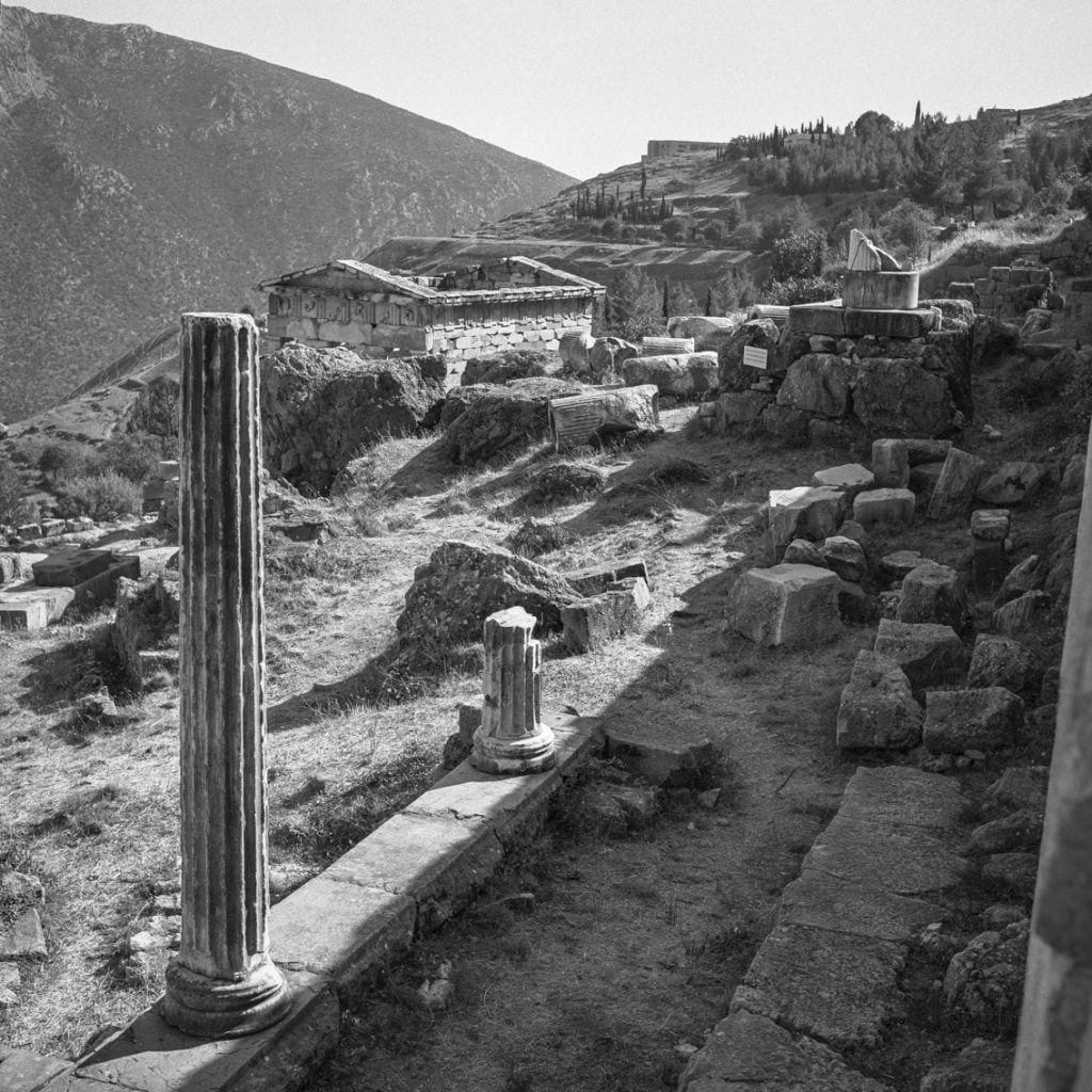 As the editor writes, “The Apollonian light enfolds the monuments that stand out in glory against the divine serenity of the Delphic landscape, and the photographer’s lens captures, in its own poetic manner, the inner power found in the unremitting interplay between light and matter slipping away from time’s inescapable transformation, building a bridge with the present.”