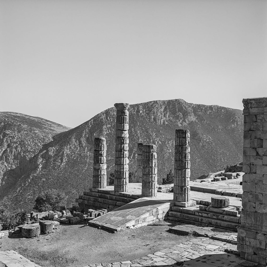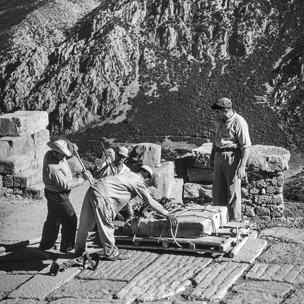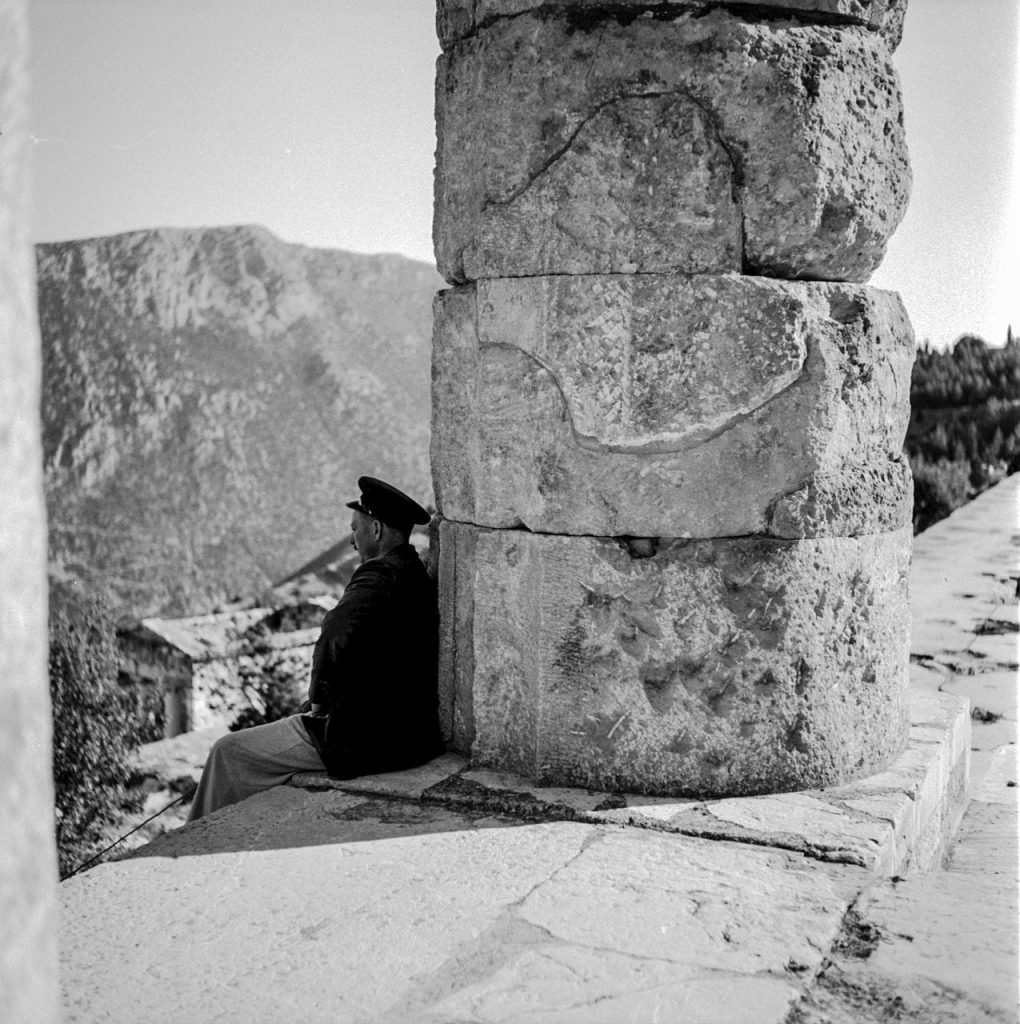 Captured in the years following World War II, McCabe’s photographs approach Delphi with restraint and deep sensitivity. His lens traces the dialogue between monumental ruins and the surrounding landscape, revealing a place shaped as much by light and silence as by stone. Far from postcard images, the photographs reflect a lived, human scale—an archaeological site still closely intertwined with daily life and memory.