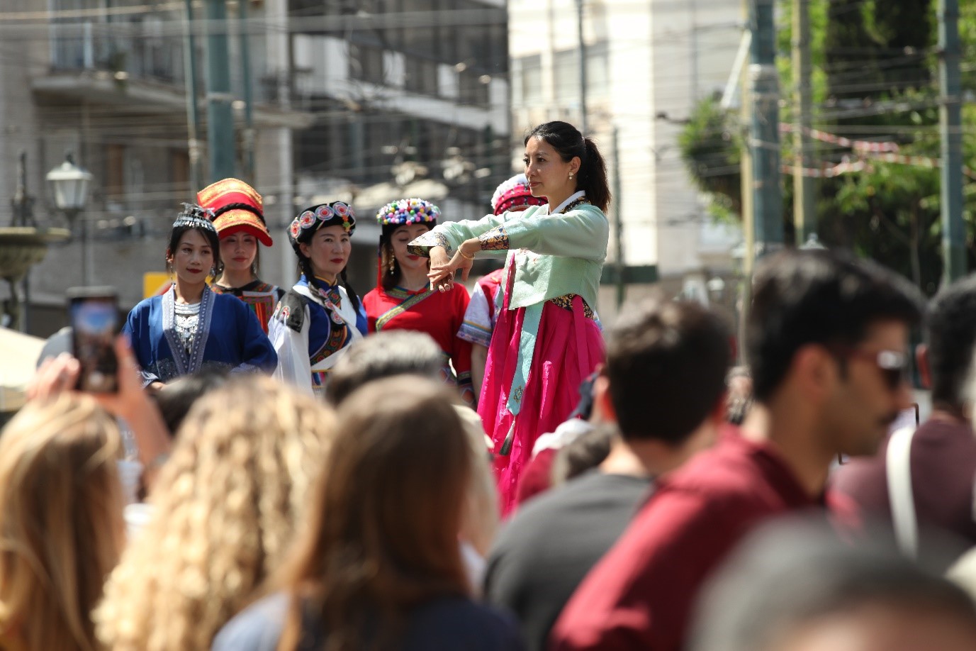 On May 11, Zappeion Megaron transformed into an immersive cultural market, set under blooming jacarandas. Visitors were treated to a lively display of traditional Chinese crafts and customs, with nearly 30 booths offering everything from martial arts demonstrations and tea ceremonies to calligraphy and ethnic fashion shows. The market allowed thousands of locals and tourists alike to explore the everyday richness of China’s multiethnic traditions.
