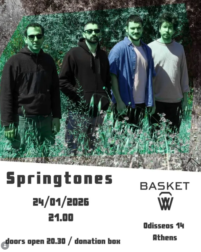 They are part of Athens’ new generation of musicians—faces you may already recognize from other projects, rooftop gigs and the city’s quietly vibrant live scene. This Friday, January 24, the spotlight turns to Springtones, a young four-piece soul-indie band, performing live at Basket_Take a Shot, one of Metaxourgeio’s newest and already much-loved creative hangouts.