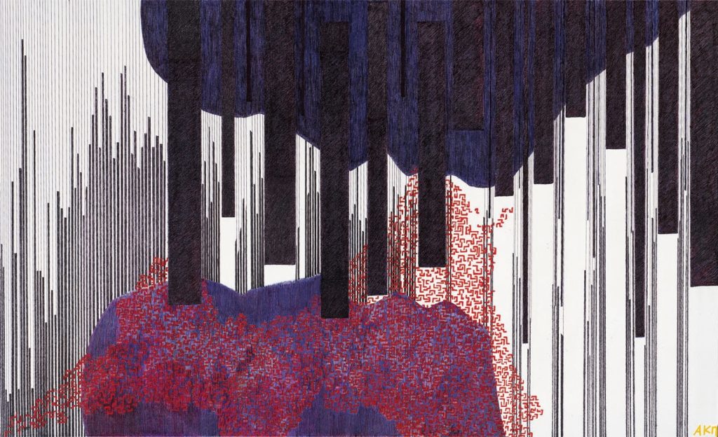 “His choice of materials—primarily ballpoint pen, alongside dozens of pens, nibs, markers, pencils and acrylics, on paper or canvas—is not arbitrary. It emerges from a given condition that transforms practical necessity into a creative process with specific surfaces and pigments. Rather than restricting him, it offers a framework of freedom within which his painting naturally finds its own language.”