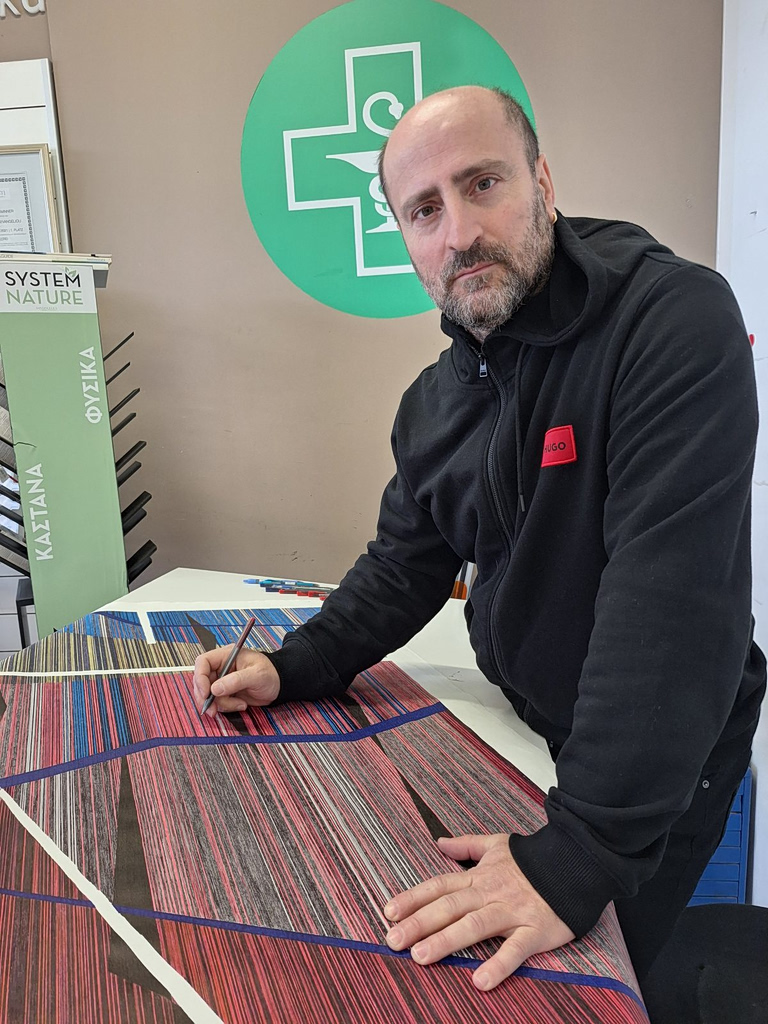 Emilio Papaevangelou stands between the pharmacy counter and the canvas. Between logic and instinct, the demands of everyday professional life and a deep, persistent need for artistic expression.