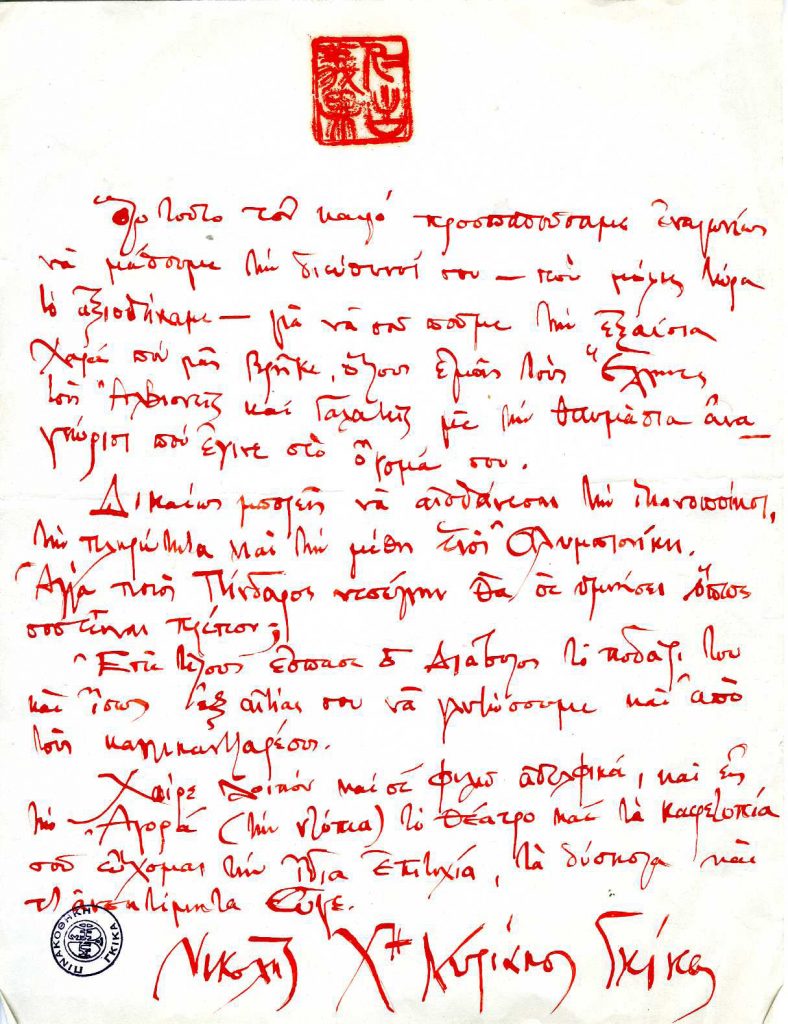 Curated by Konstantinos Papachristou, visitors can view congratulatory letters and telegrams to Seferis from prominent Greek personalities of the era, such as Andreas Embirikos, Nikos Hadjikyriakos-Ghikas, Nikos Gavriil Pentzikis, Nanos Valaoritis, and Sofia Vembo.