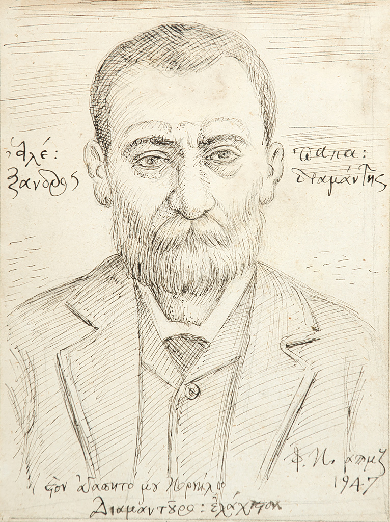 A portrait depicting influential Greek novelist, short-story writer and poet Alexandros Papadiamantis.