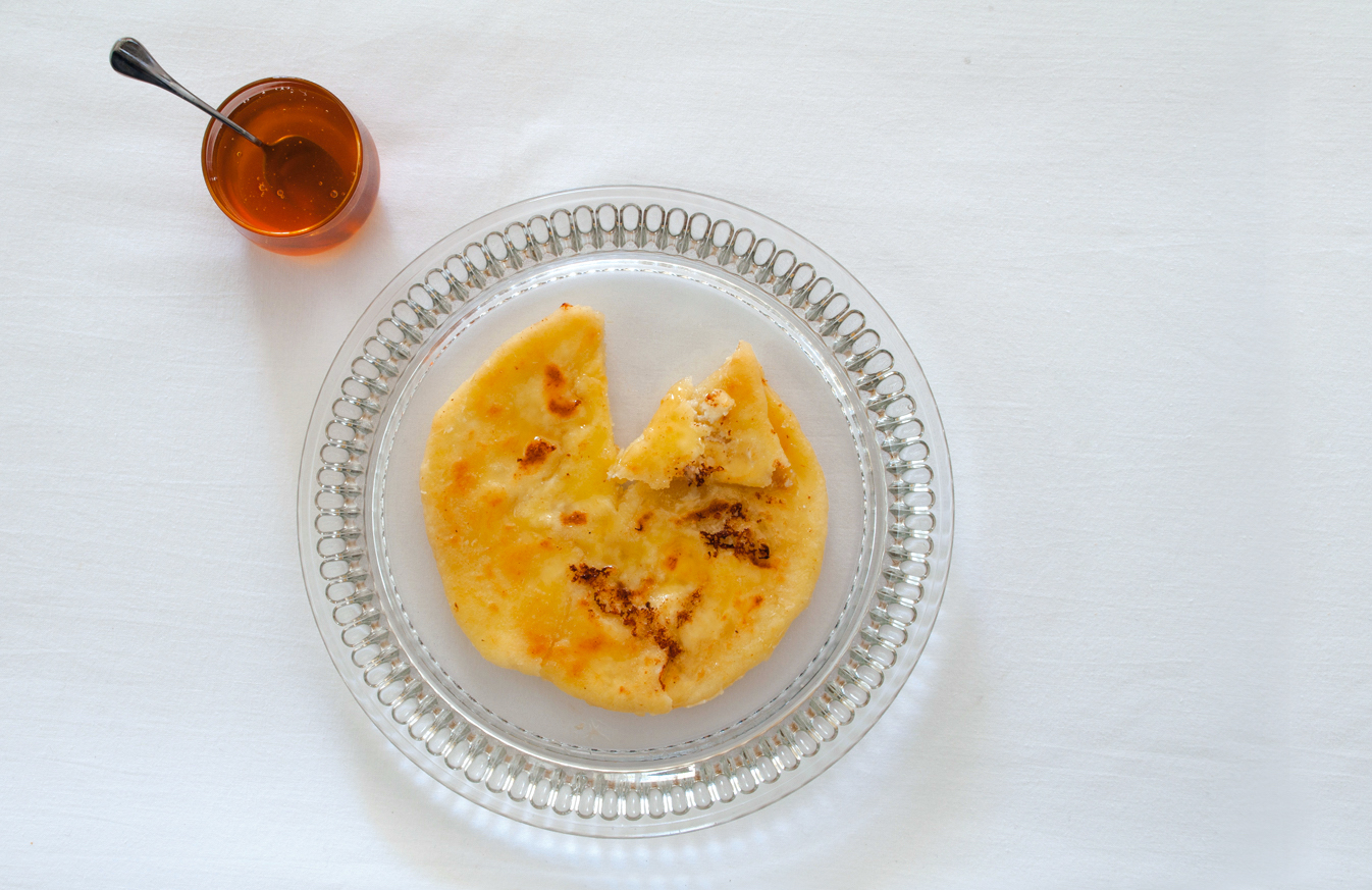 The “sfakianopita” (also known as Sfakian Pie) is a wafer-thin, pancake-like pie made of flour, water, extra virgin olive oil, salt and raki, and a filling of Cretan mizithra cheese. It is topped with honey from Crete. In the past, it was made in wood fire ovens. Today it is made in the frying pan.