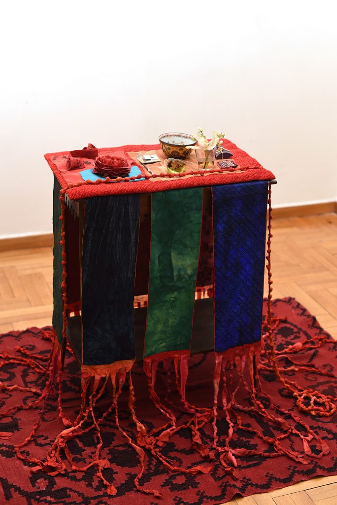 “This work connects me to my past and origins,” Krikki says of her intricately embroidered and painted fabrics, each rich with vibrant stitches. Raised in the expansive Thessalian plains and the dense forests of Pindus, Krikki grew up in an environment steeped in the fabric trade—her father was a merchant, and her mother a passionate embroiderer and knitter. This early exposure to the therapeutic power of needlework profoundly influenced her artistic practice.