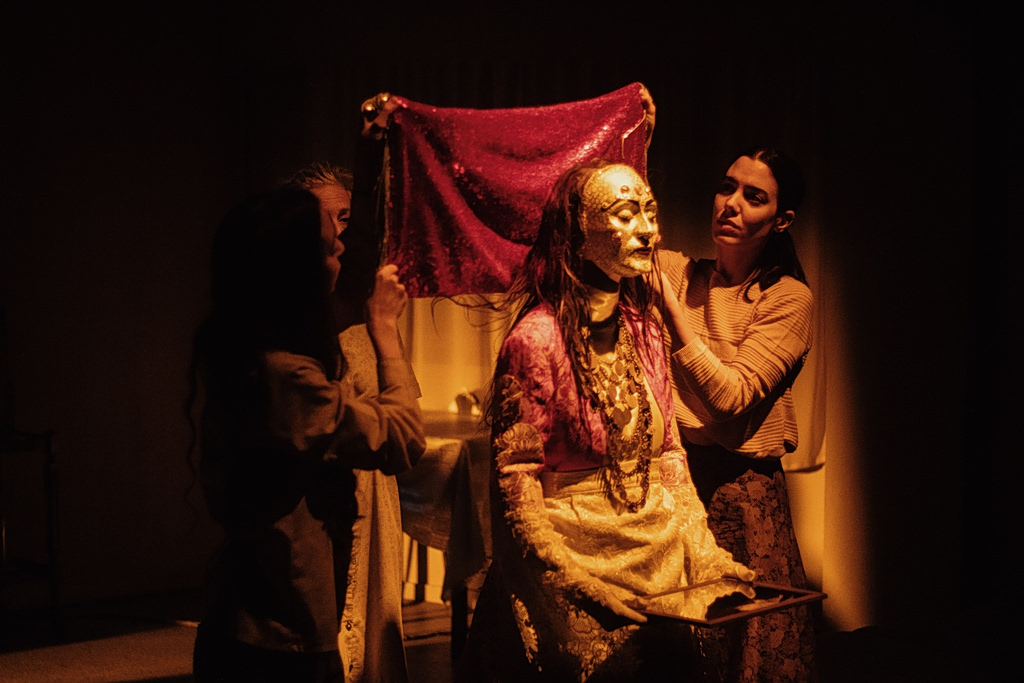 A scene during the performance “Goodbye Lindita” at the National Theatre of Greece. Credit: National Theatre of Greece.