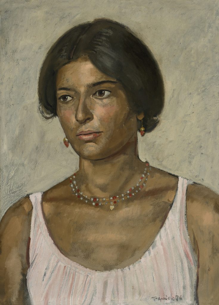 Yannis Tsarouchis (1910 – 1989 ), “Portrait of Despina with necklace and earrings”