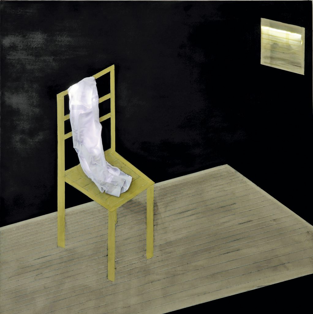 Light, or the lack of it, has always shaped Panayotidis’ work. “I am not a colorist. My view is that Greeks have so much light that we don’t need to express ourselves with colour. I think that we, artists like Kounellis, Takis, old Choklis, we didn’t use colours. That is my opinion“. Panayotidis often quotes the philosopher Zan-François Liotard who said that “artists do nothing but go back to their childhood or even their infancy”: “I think it’s true, at least as I understand it. I must confess that I had a very nice childhood. I remember that when I set out from Kypseli to go to Piraeus to swim, at the only indoor pool that existed at that time at the Cadet School, I took the trolley, then the electric train and walked to Hadjikyriakeio passing through the Trouba neighborhood. There you could see through the windows a lamp, a hanging light bulb, a table and a few chairs.