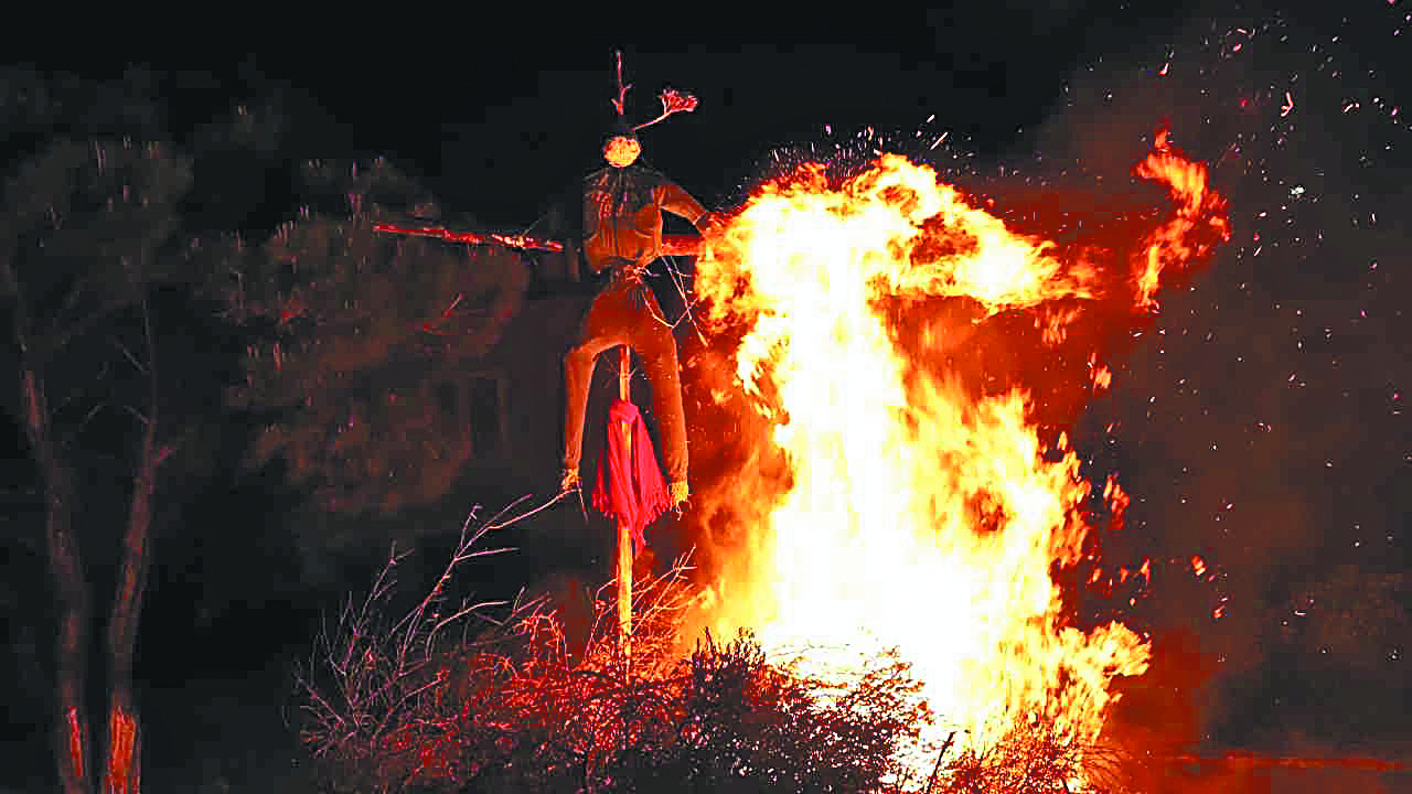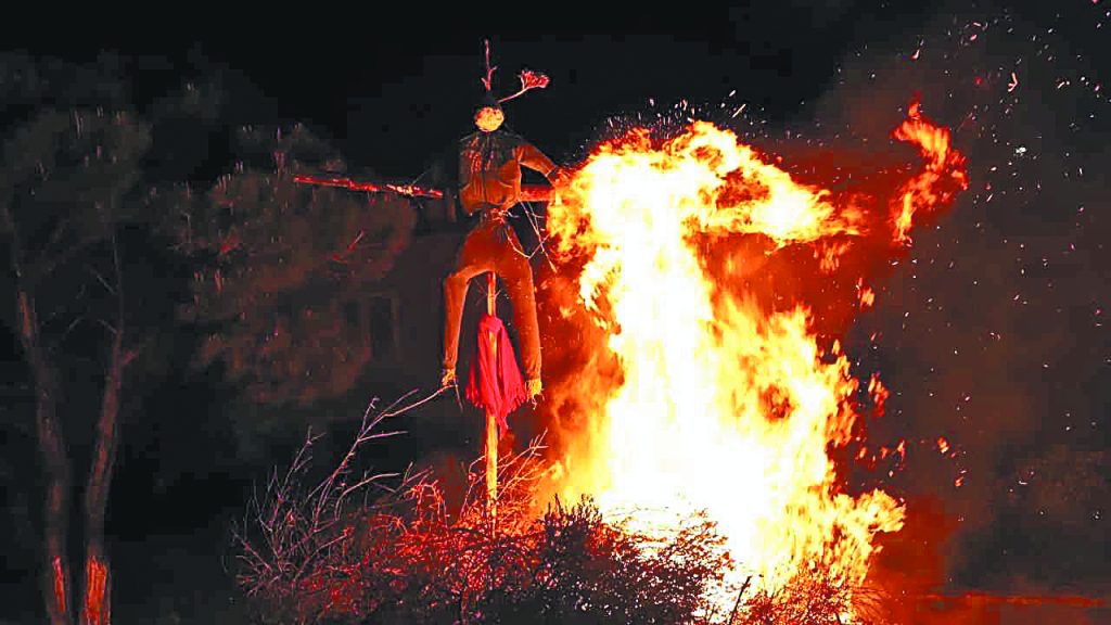In several villages in the region of Pieria, a unique tradition known as “To kapsimo tis rokas” (the burning of the spinning wheel) takes place on the third day of Easter. Women dress in traditional costumes and dance the “Diplotos”—a local folk dance—while singing Easter songs. At the same time, a spinning wheel, once symbolic of women’s domestic labor under Ottoman rule, is set on fire. The act represents rebellion against oppression and the affirmation of freedom. Over time, it has become a symbolic ritual that leaves spectators deeply moved.